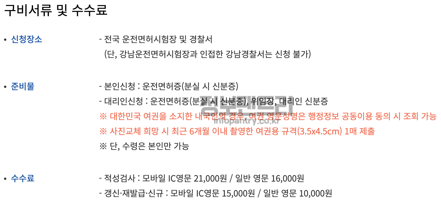 영문운전면허증 발급방법 발급수수료