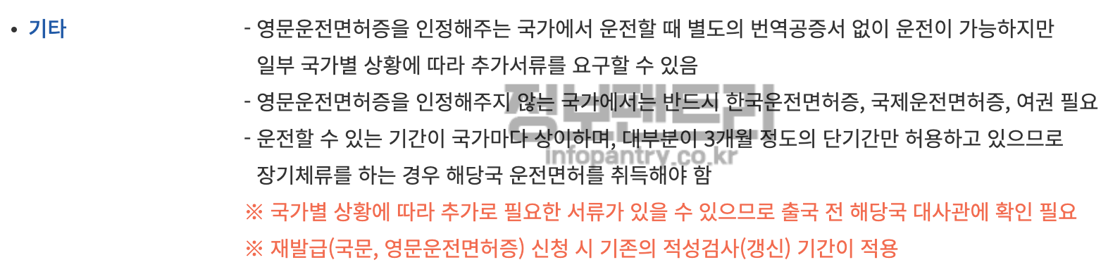 기본적으로 영문운전면허증 인정국가에서 운전할 때 별다른 추가서류 없이 운전이 가능한것이 기본이지만, 몇 몇 국가에서는 상황에 따라 추가서류가 필요한 경우가 있을 수 있어요. 출국 전에 반드시 해당국 대사관에 확인해서 체크하시기 바랍니다.