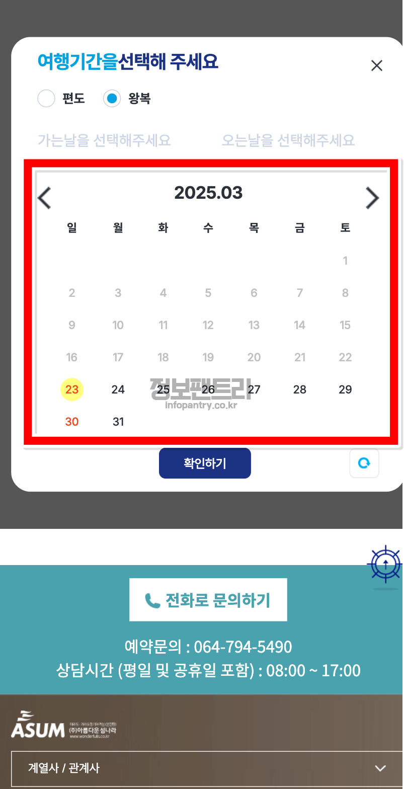 5. 가는날과 오는날을 달력에서 선택해주세요.