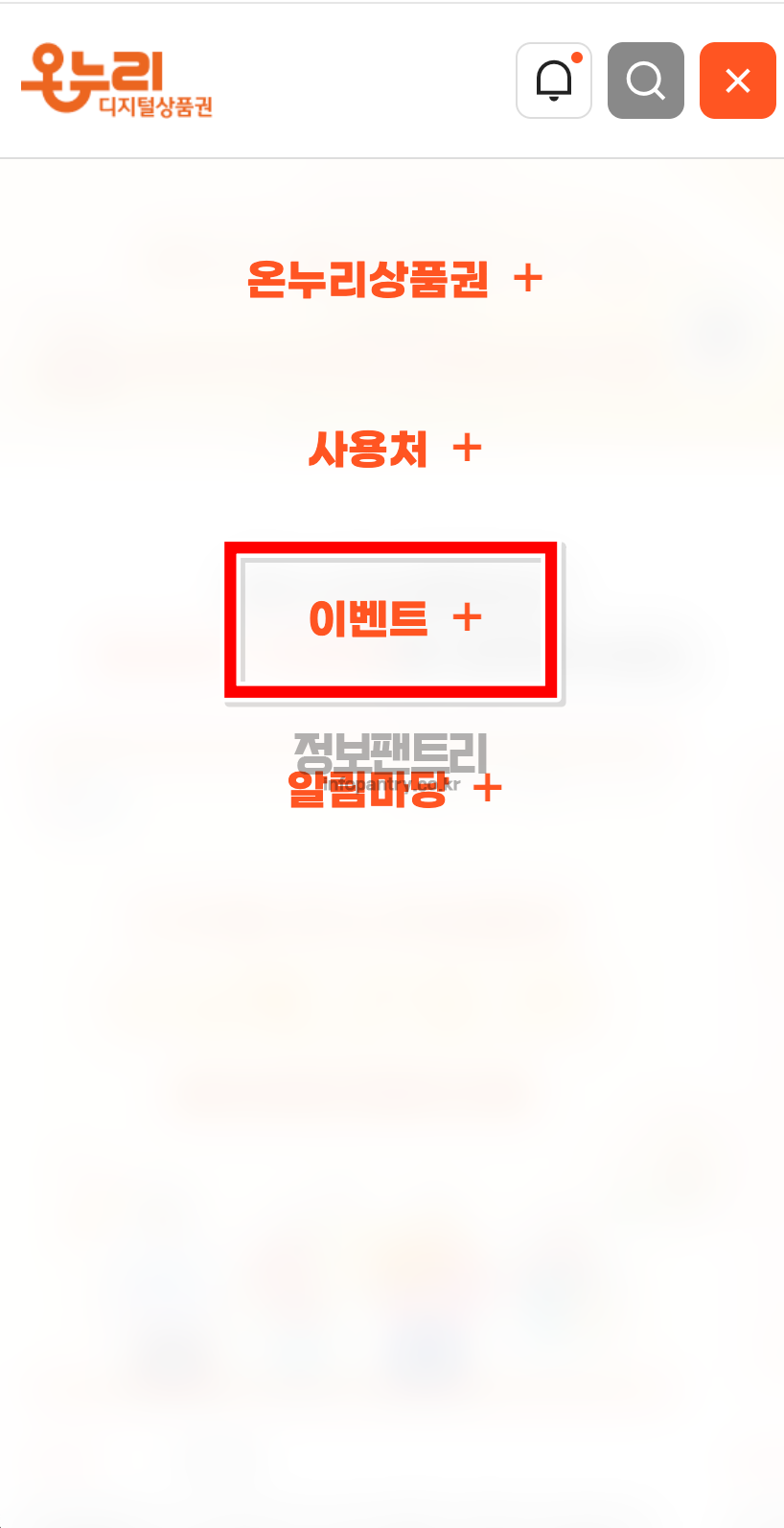 2. 메뉴창이 열리면 이벤트 메뉴를 선택해보세요.