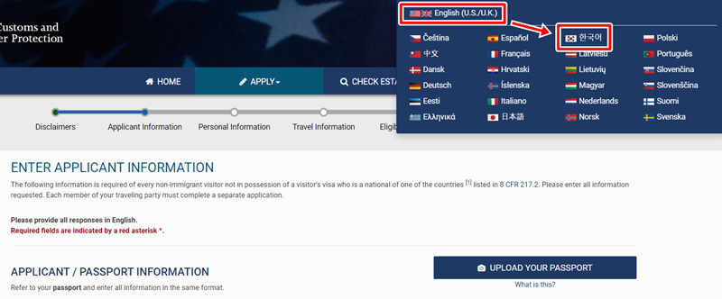 esta 전자여권 미국 비자 신청