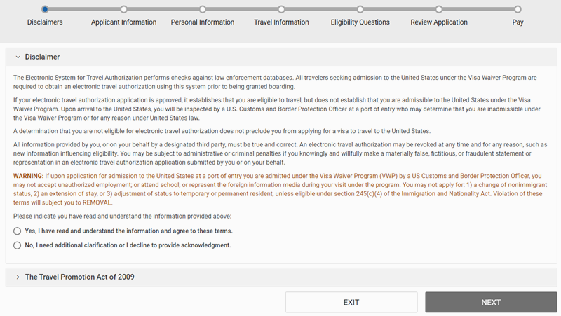Official ESTA Application Website, U.S. Customs and Border Protection