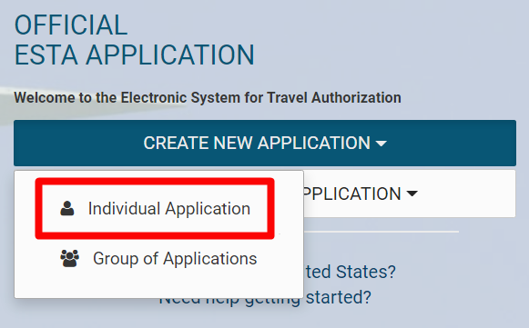 1. ESTA 신청부터 상태 확인까지 직접 할 수 있는 정부 사이트예요. 영어와 한국어 둘 다 지원돼서 편리하게 이용하실 수 있어요. 사이트에 접속하면 가운데에 파란색 'CREATE NEW APPLICATION'이라는 단추가 보여요. 눌러서 신청을 시작해 주세요.