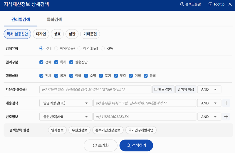 3. 더 정확한 결과를 원한다면 상세검색 기능을 활용해보시는 게 좋아요. 출원인, 등록 상태, 분류 같은 항목을 직접 설정할 수 있어서 원하는 조건에 맞게 꼼꼼하게 살펴볼 수 있어요.