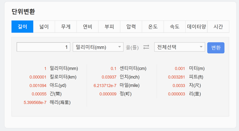 1. 다음 포털의 단위 변환 기능은 일상에서 자주 쓰이는 다양한 단위를 쉽게 바꿔볼 수 있어요. 길이, 넓이, 무게, 속도, 온도처럼 헷갈릴 수 있는 것들을 간단하게 비교해볼 수 있답니다.