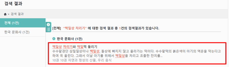 1. 국사편찬위원회에서 운영하는 곳으로 초등학생부터 일반인까지 누구나 쉽고 재미있게 우리 역사를 배울 수 있도록 다양한 역사 자료와 교육 콘텐츠를 제공하고 있어요. 백일상에 대한 내용도 확인 할 수 있는데 검색창을 통해서 ‘백일상 차리기’를 검색합니다.