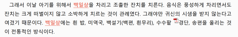 2. 검샐 결과를 보시면 한국 문화사에 백일상에 꼭 올릴 것들 및 백일 떡 돌리기에 대한 설명을 자세하게 확인 할 수 있습니다.