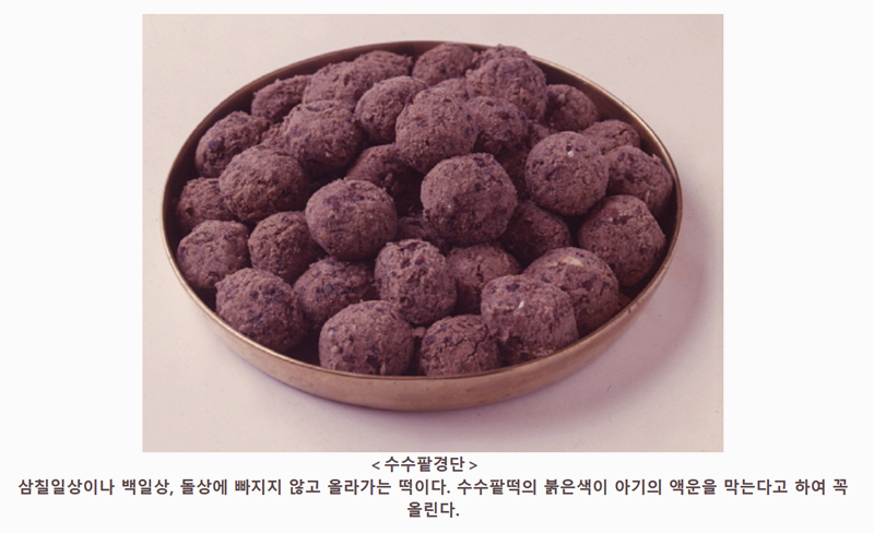 4. 수수팥경단은 아기의 특별한 날 상에 올라가는 떡으로 붉은색이 액운을 막아준다고 믿어 꼭 올린다고 합니다.