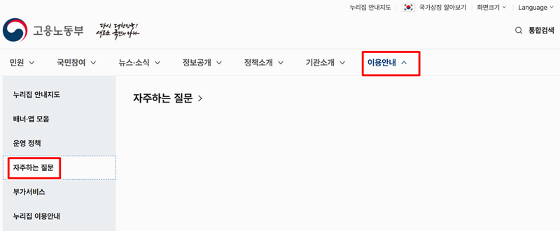 1. 고용노동부 사이트는 일하는 사람과 관련된 권리나 제도에 대해 쉽게 찾아볼 수 있도록 만든 공식 누리집입니다. 일자리, 근로조건, 퇴직금 같은 내용을 확인할 수 있어요. 퇴직금 관련 내용의 경우 이용안내의 자주하는 질문에서 관련 내용을 확인 할 수 있습니다.