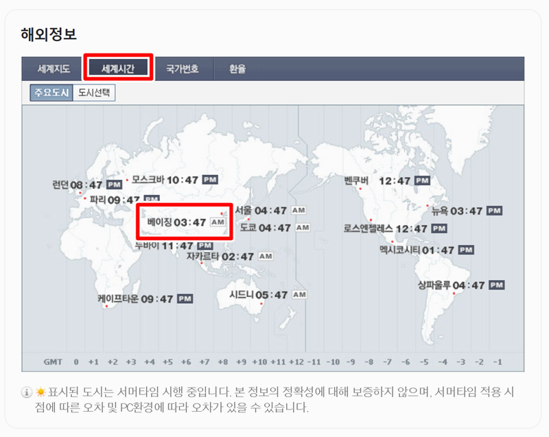 3. 중국의 현재 시간도 함께 확인할 수 있어요. 수도인 베이징 기준으로 시간이 표시되니까 시차 계산할 때 헷갈리지 않게 참고하시면 좋습니다.