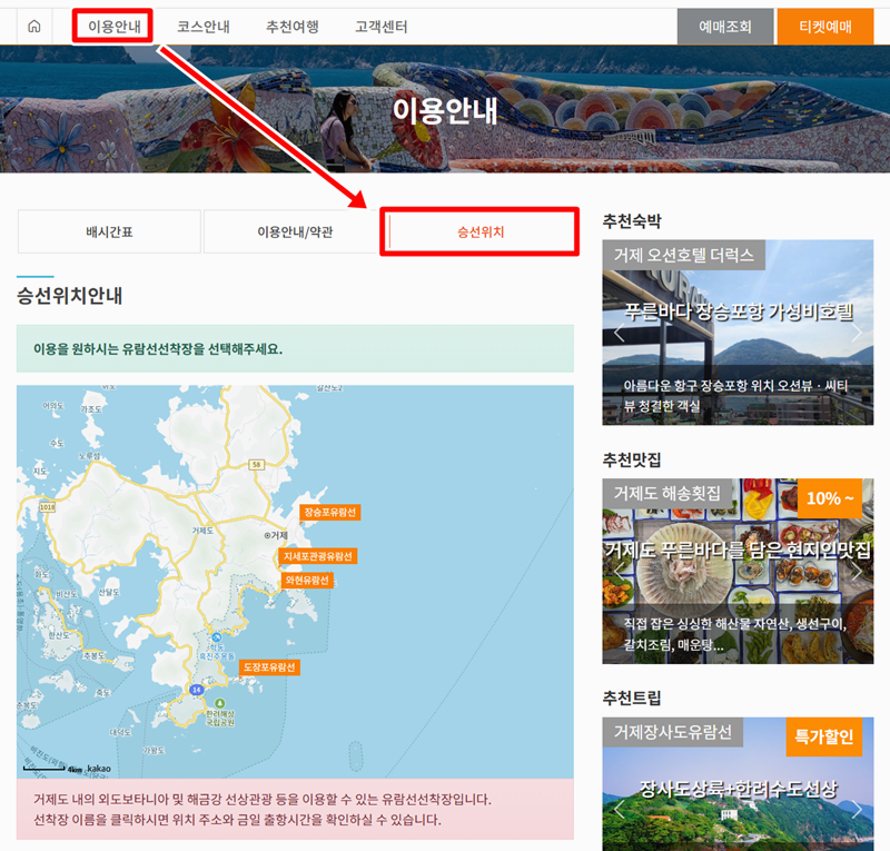 8. 탑승 장소는 이용안내 카테고리에서 승선위치를 확인하면 더욱 자세히 알 수 있습니다. 이를 통해 혼잡한 날에도 정확한 승선 위치를 확인하고 편리하게 탑승할 수 있습니다.