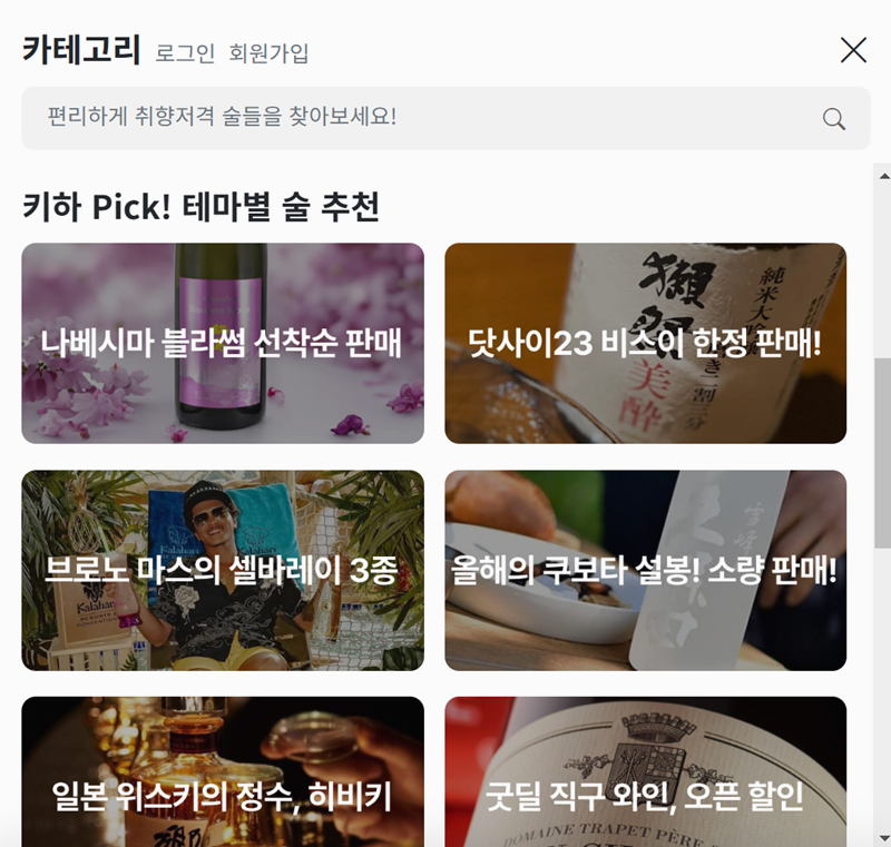 키햐(Kihya)에서 와인, 사케, 위스키, 전통주, 사케 등의 술들을 만나보세요! 키햐!