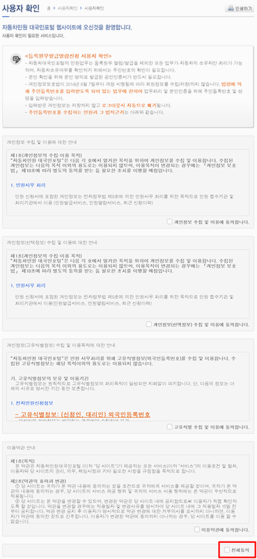 2. 차량 등록원부를 조회하고 발급받기 위해서는 먼저 이용 동의 약관에 동의해야 합니다. 이 과정은 온라인 서비스를 원활하게 이용하기 위한 기본적인 절차로 약관을 꼼꼼히 확인한 후 동의해야 합니다.