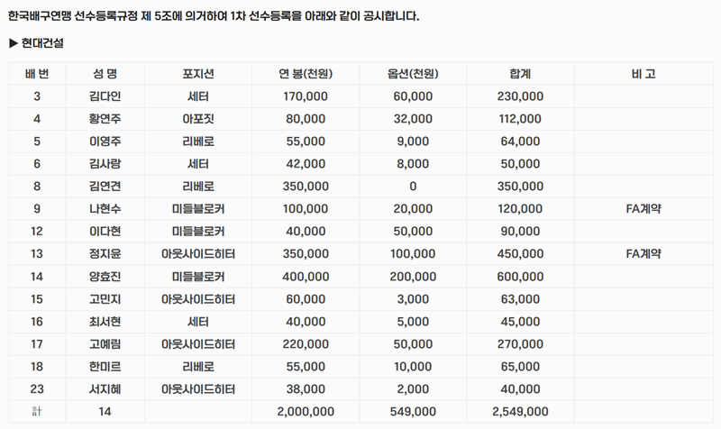 외국인 선수들은 리그에서 중요한 역할을 맡고 있기 때문에 그들의 연봉은 상당히 높은 경우가 많습니다. 실력 있는 외국인 선수들이 팀의 성적을 이끌기 때문에 그들의 연봉은 팀 예산과 선수 개인의 능력에 따라 달라집니다. 반면, 한국 선수들도 뛰어난 성과를 낸다면 높은 연봉을 받을 수 있으며 전체 연봉 순위에서 상위권을 차지할 수 있습니다. 여자배구 연봉순위 한국, 외국인은 아래의 kovo 공시에서 알아볼 수 있습니다.