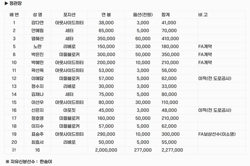 여자배구 연봉순위 한국 외국인