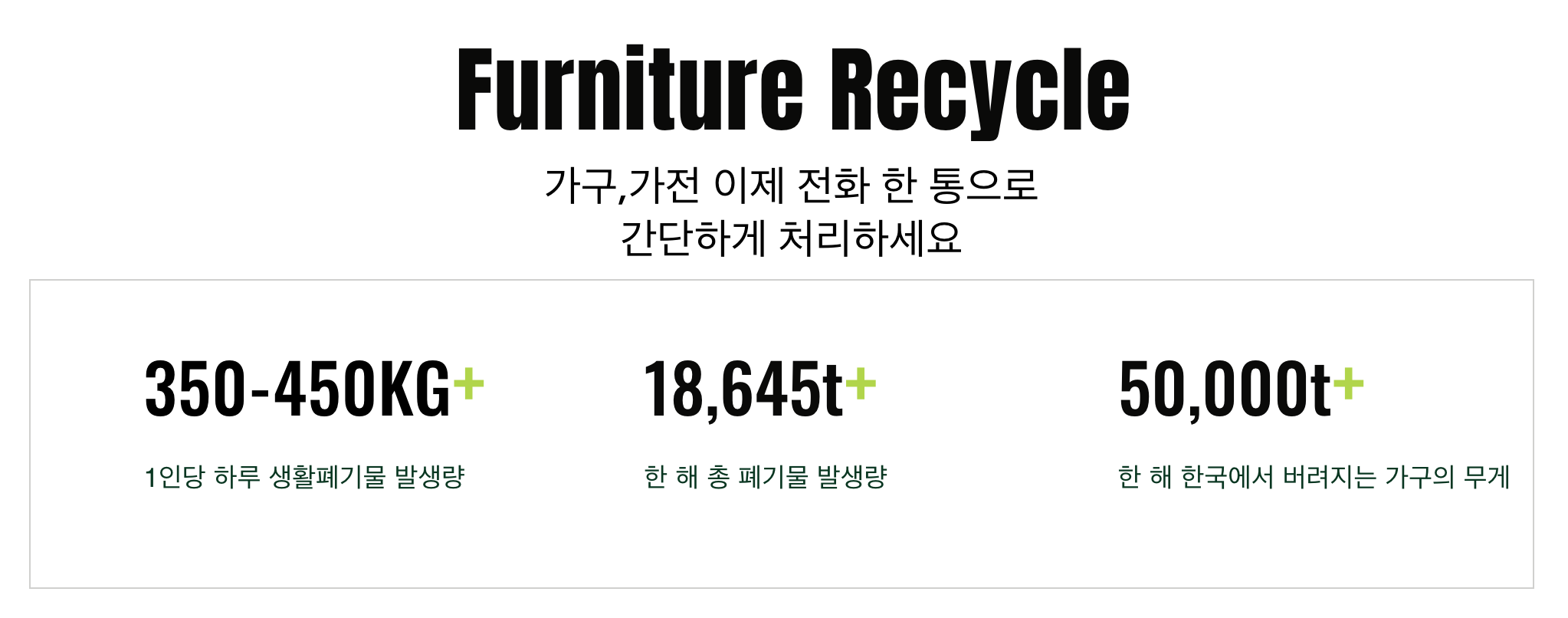 2. 우리나라 사람 한 명이 하루에 배출하는 생활폐기물 양이 350~450g 정도 된다고 해요. 1년이면 무려 18,645톤이나 쌓이는데 가구만 해도 한 해 50,000톤이 버려진다고 하니 정말 어마어마하죠. 이걸 직접 치우려면 시간도 들고 힘도 많이 드는데 전화 한 통으로 쉽게 정리할 수 있는 방법이 있으니 부담이 훨씬 줄어듭니다.