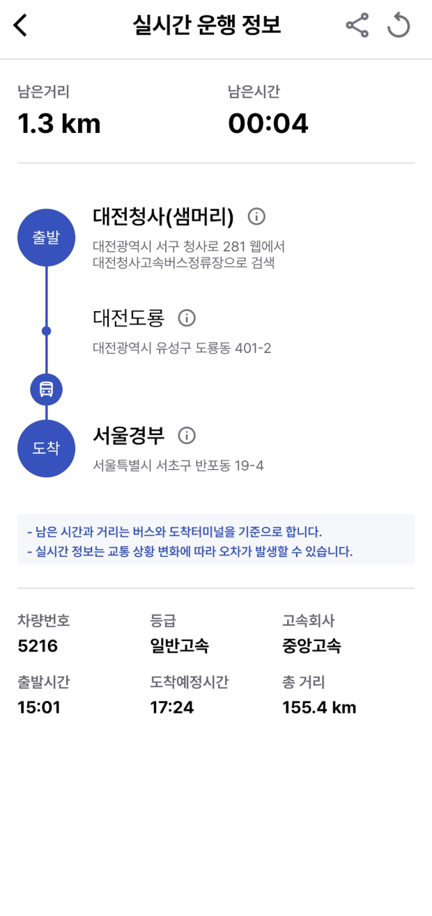 7. 앱에서는 실시간 운행 정보도 확인할 수 있어요. 남은 거리와 시간도 표시돼서 도착 예상시간 확인하기 편하고, 지연 여부도 바로 확인 가능해 이동 중에도 상황을 쉽게 알 수 있어 정말 유용합니다.