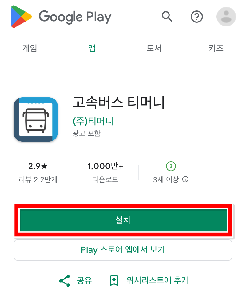 2. 안내된 모바일앱 설치 화면에서 고속버스 모바일앱 설치를 진행하시면 돼요. 설치가 완료되면 자동으로 앱 아이콘이 생기니 바로 실행해주시면 되고 복잡하지 않아서 누구나 쉽게 할 수 있습니다.