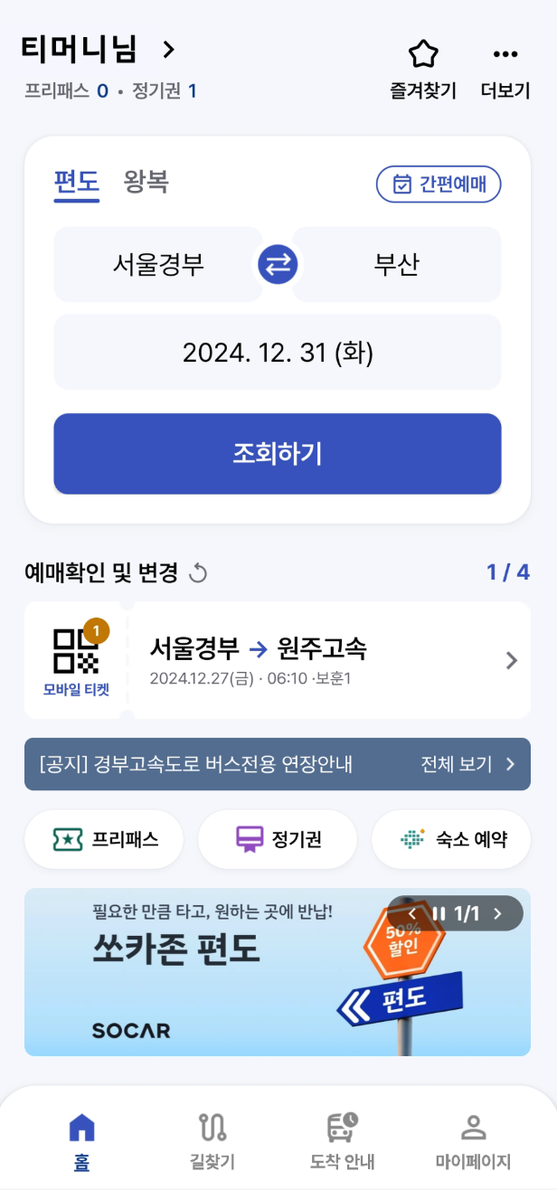 코버스를 이용하면 고속버스 예매가 훨씬 편해집니다. 특히 명절이나 연휴, 주말처럼 이동이 몰리는 시기에는 사전에 예매해두면 원하는 시간과 좌석을 미리 확보할 수 있어 여행이 훨씬 여유롭습니다. 번거롭게 터미널까지 가서 표를 끊는 번거로움 없이 손쉽게 여행 준비해보세요.