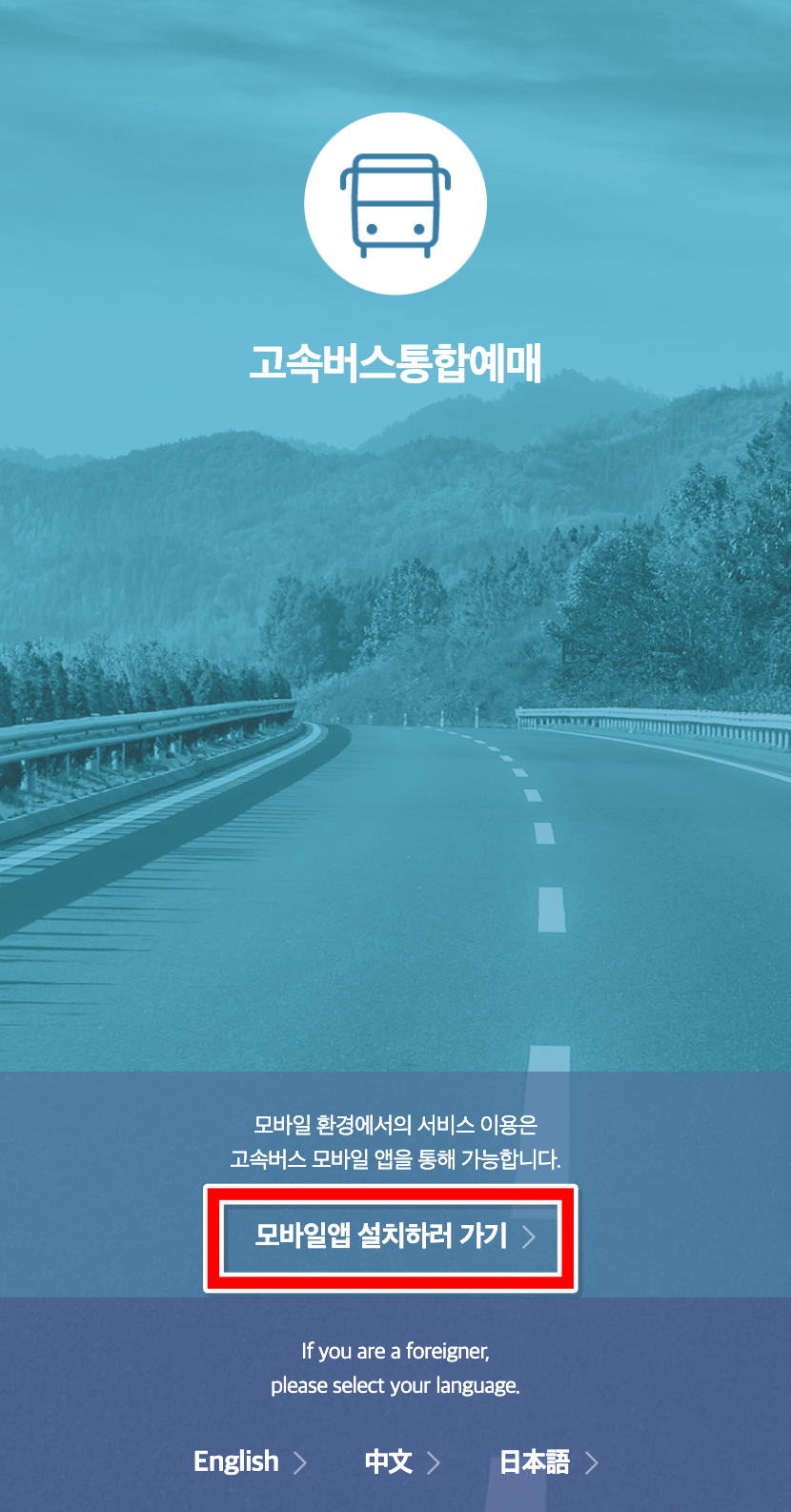 1. 고속버스통합예매 코버스 홈페이지에 접속하면 모바일에서는 고속버스 모바일앱으로만 예매가 가능하다는 안내가 나와요. 그 아래에 모바일앱 설치 바로가기가 함께 표시되니까 그 부분 눌러서 앱 설치 화면으로 넘어가주시면 됩니다.
