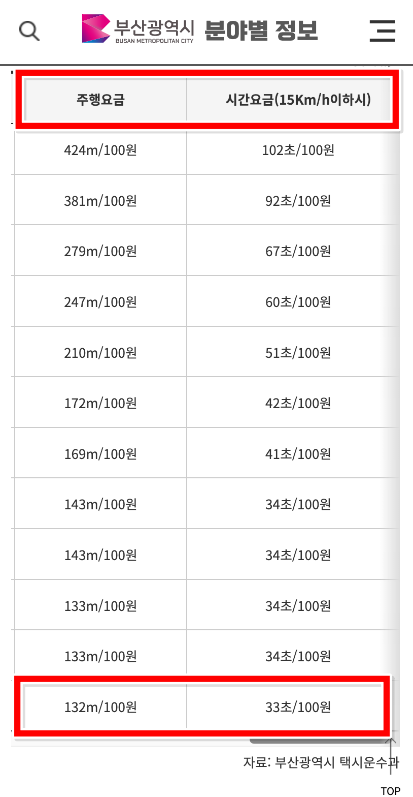 부산 택시 기본요금