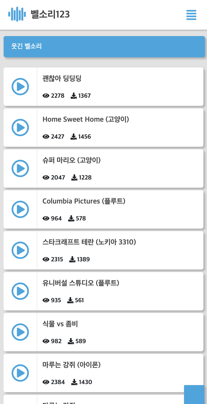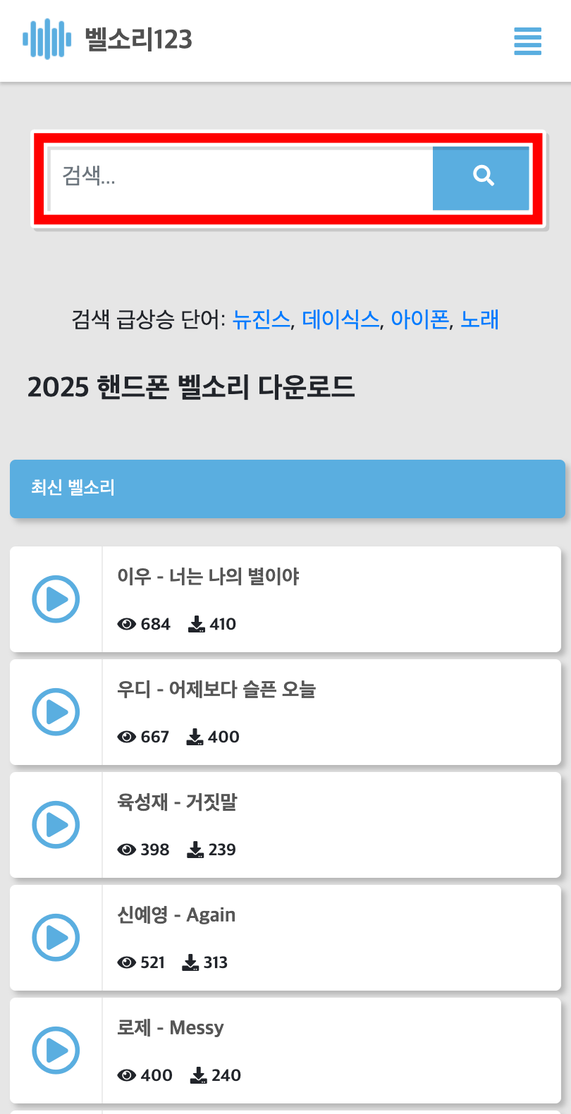 1. 벨소리123 홈페이지에 들어가면 메인 화면부터 최신곡, 인기곡, 웃긴 벨소리 같은 다양한 카테고리가 정리돼 있어 찾기 편해요. 원하는 분위기나 기분에 맞춰 골라보면 재미도 있고 바로 확인할 수 있어요.