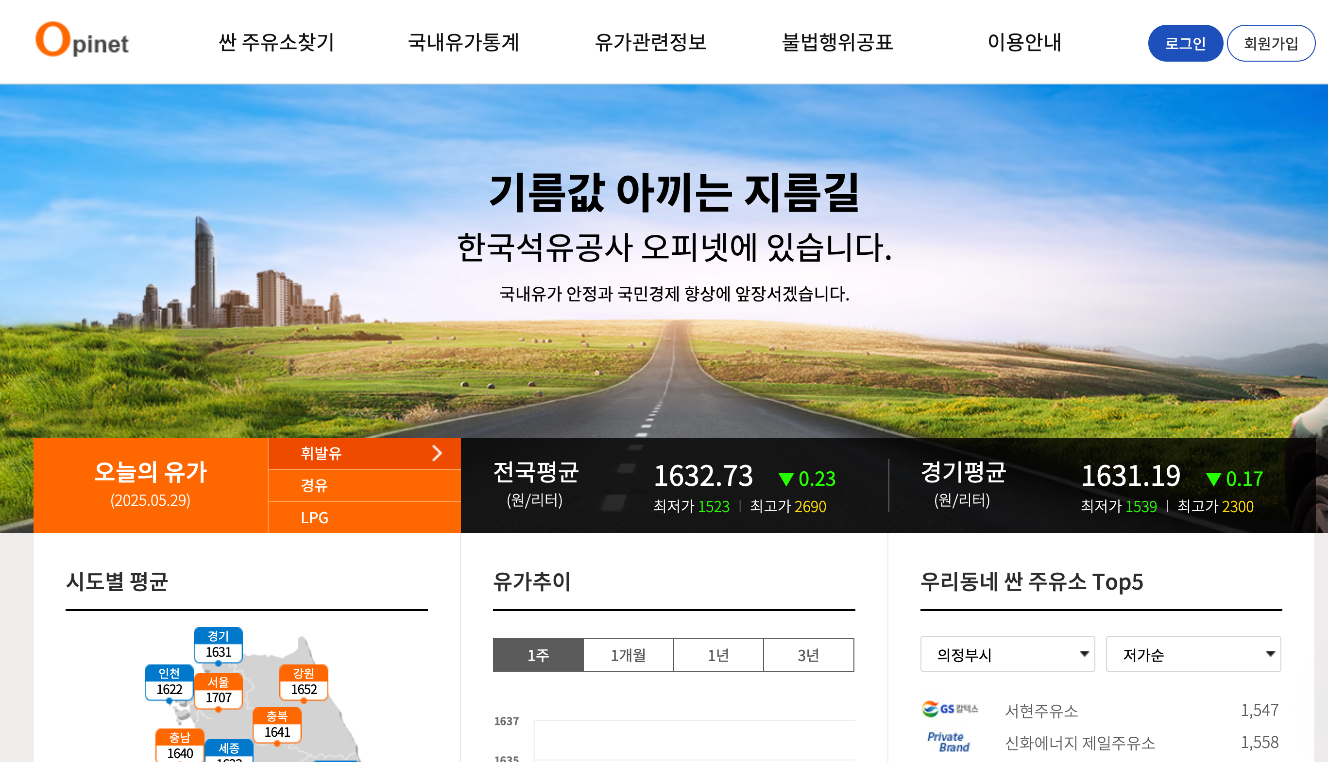 1. 한국석유공사와 산업통상자원부에서 공식으로 운영하는 오피넷 홈페이지로 들어가면 전국 주유소, 충전소 가격을 한눈에 확인할 수 있어 정말 편리합니다. 이곳은 공신력 있는 곳이라 믿고 참고하셔도 좋습니다.