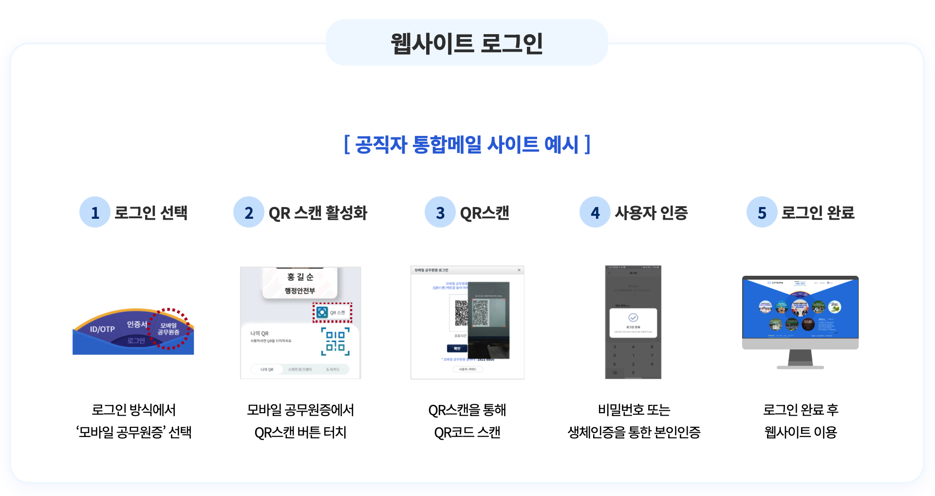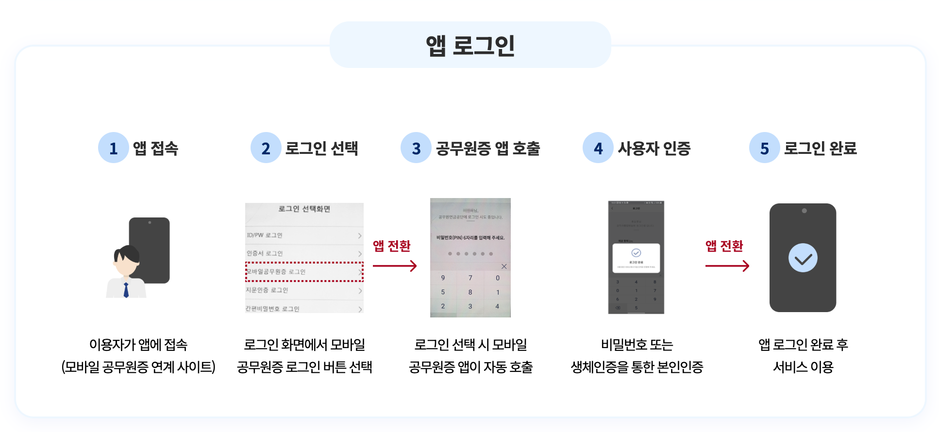 8. 모든 절차를 마치고 나면 모바일 공무원증 발급이 완료됩니다. 이렇게 발급받은 공무원증으로 다양한 업무를 처리할 수 있고, 출입 및 신분 확인에도 활용할 수 있습니다. 모바일 공무원증 인증을 이용한 로그인 방법도 바로 알려드릴게요.
