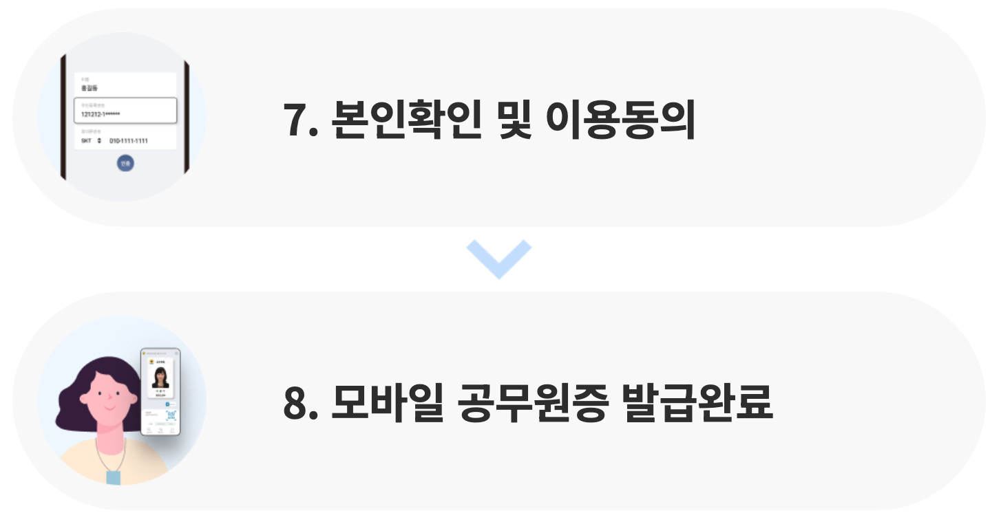 7. 비밀번호를 설정했다면 이용 동의와 본인 확인 절차를 진행해야 합니다. 이 과정을 거쳐야만 모바일 공무원증 발급이 최종적으로 완료됩니다.