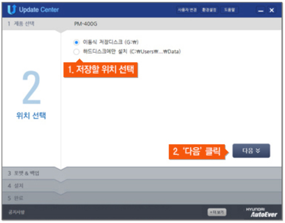 5. SD카드에 저장할 경우 이동식 저장디스크를 선택하시고, 하드디스크에 설치를 원하실 경우 하드디스크에만 설치를 선택하세요.