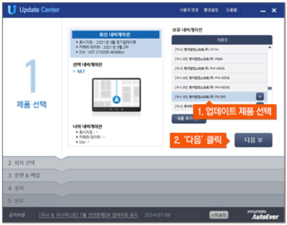 4. 지니 네비게이션 업데이트 제품을 선택하시고 다음 버튼을 눌러주세요.