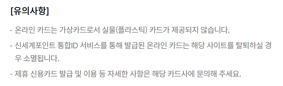 8. 온라인 카드의 경우 실물카드는 따로 발송되지 않아요. 통합 ID를 통해 등록된 카드는 해당 서비스를 탈퇴하면 함께 삭제될 수 있으니 참고해요.