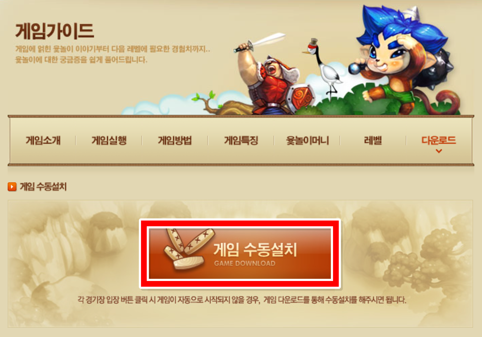2. 윳놀이 게임설치 안내가 바로 보이실거에요.