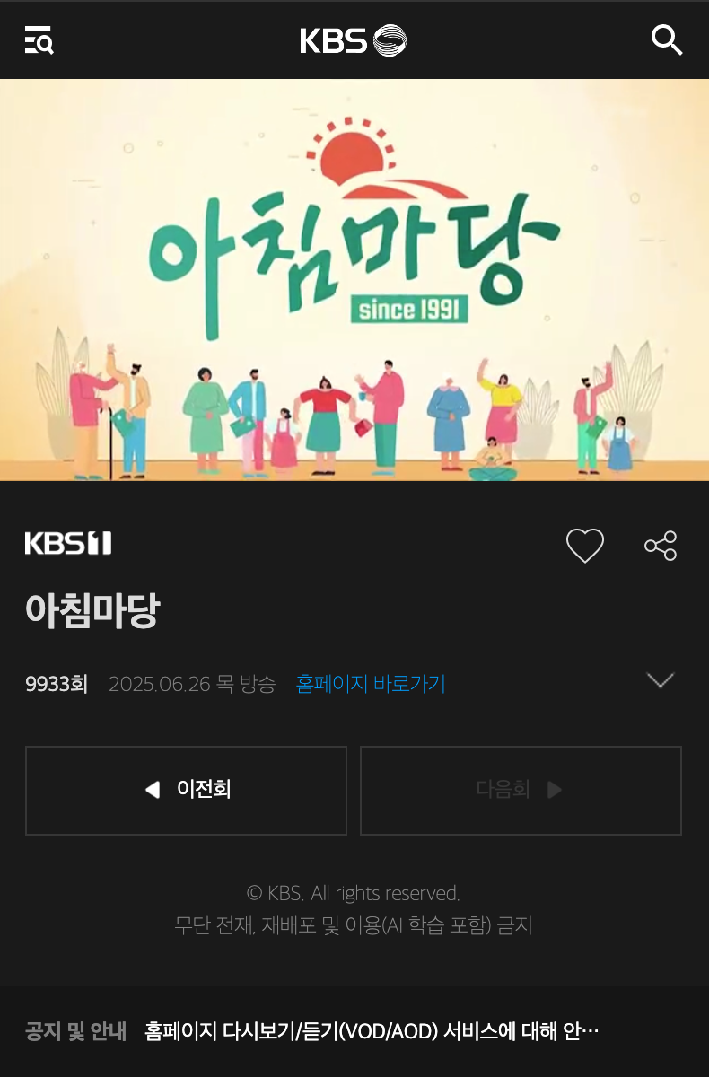 '아침마당'의 다시보기 입니다.