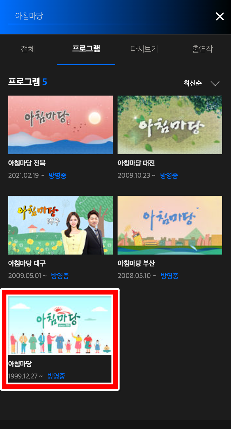1. 안내해드린 KBS 아침마당 페이지로 들어가시면 지역별 아침마당 전북, 아침마당 대전, 아침마당 대구, 아침마당 부산 중 골라 시청하실 수 있어요. 저는 수도권 기본 아침마당을 선택해보도록 할게요.