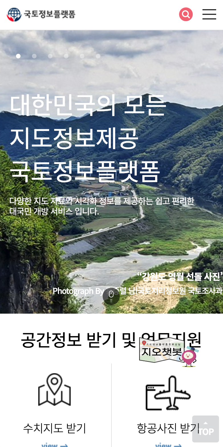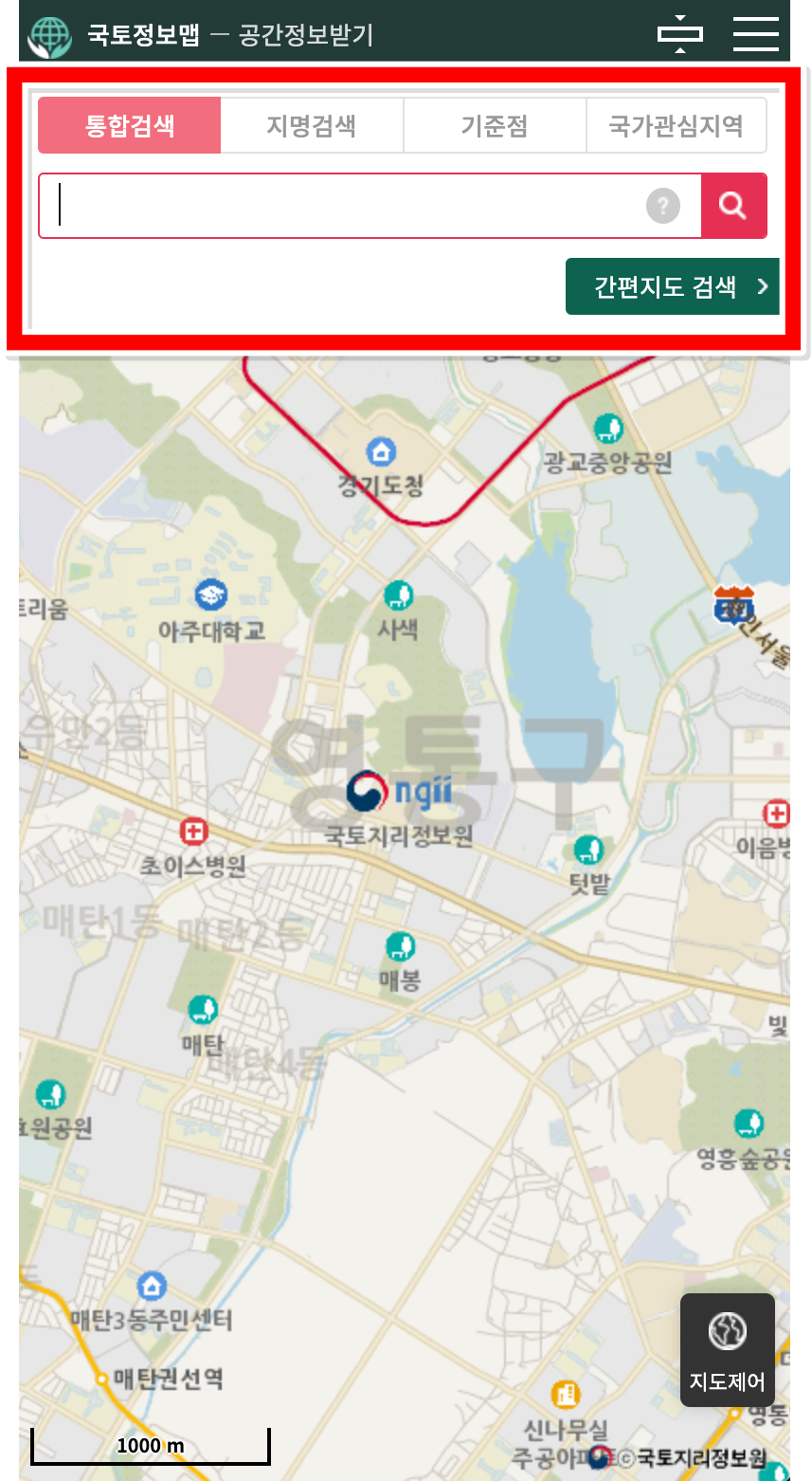 국토교통부 국토지리정보원 (우)16517 경기도 수원시 영통구 월드컵로 92(원천동) 전화 : 031-210-2700 팩스 : 031-210-2644 본 홈페이지는 게시된 이메일 주소가 자동 수집되는 것을 거부하며 이를 위반시