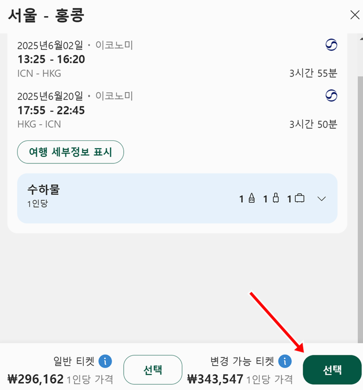 6. 일부 항공권은 일반 티켓과 변경이 자유로운 티켓 중에서 고를 수 있습니다. 여행 계획의 변동 가능성을 고려하여 본인에게 더 적합한 종류의 티켓을 선택하면 됩니다.