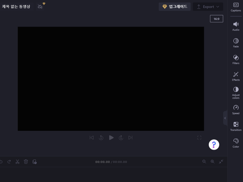 4. 새로운 프로젝트를 시작하면, 영상을 미리 보고 순서를 배열할 수 있는 타임라인이 있는 빈 편집 화면이 나타납니다.