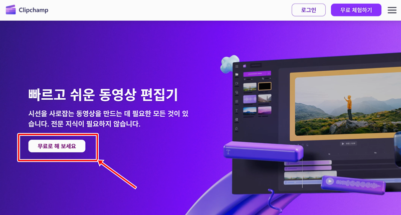 1. 홈페이지에 방문하여 '무료로 해 보세요' 항목을 선택함으로써 영상 편집의 첫걸음을 뗄 수 있습니다.