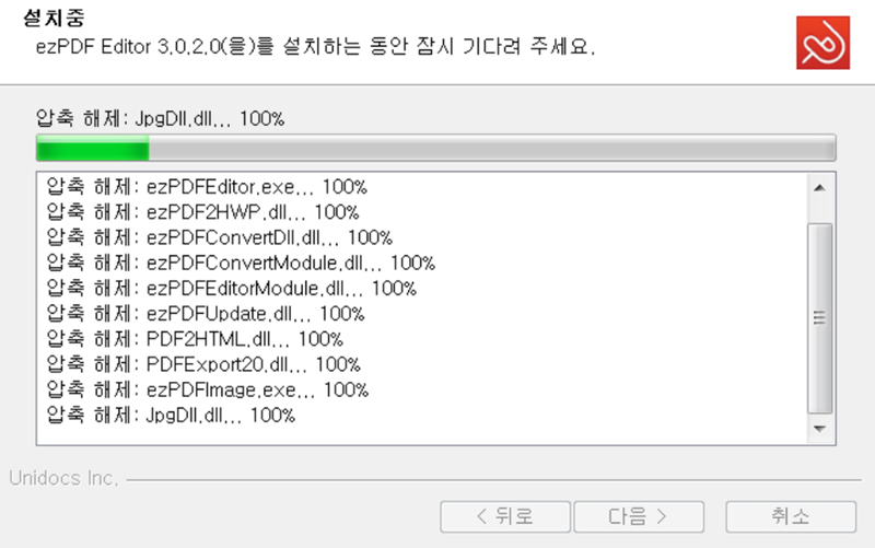 4. 설치가 시작되면 프로그램에 필요한 파일들이 컴퓨터에 복사되는 과정이 진행됩니다. 압축 해제가 완료될 때까지 잠시 기다리면 모든 설치 절차가 자동으로 마무리됩니다.