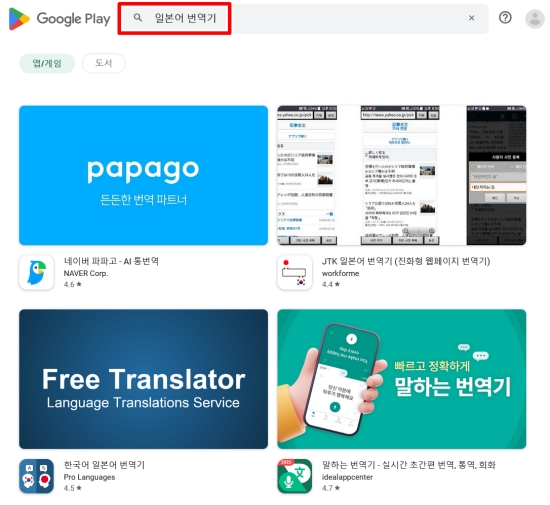 5. 만약 사용 중인 프로그램 외에 다른 선택지를 찾아보고 싶다면, 앱 마켓 검색창에 '일본어 번역기'라고 입력해 보세요. 그러면 현재 출시된 다양한 종류의 번역 프로그램 목록이 나타나, 각자의 필요와 취향에 맞는 것을 비교하고 선택할 수 있습니다.