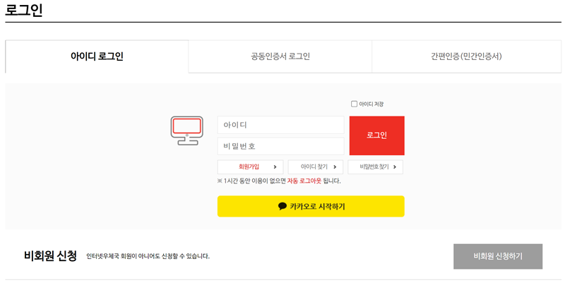 2. 예약을 위해서는 본인 확인이 필요해요. 회원이라면 아이디로 간편하게 로그인할 수 있고, 계정이 없는 경우에도 '비회원 신청하기'를 통해 가입 과정 없이 서비스를 바로 이용할 수 있어 편리합니다.