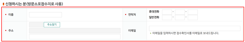 7. 이번에는 소포를 받으실 분의 정보를 입력합니다. 받는 분의 성함과 연락처, 그리고 배송될 주소를 틀리지 않게 꼼꼼히 적어주세요. 운송장에는 신청하는 분의 이름이 기재된다는 점도 참고해 주세요.