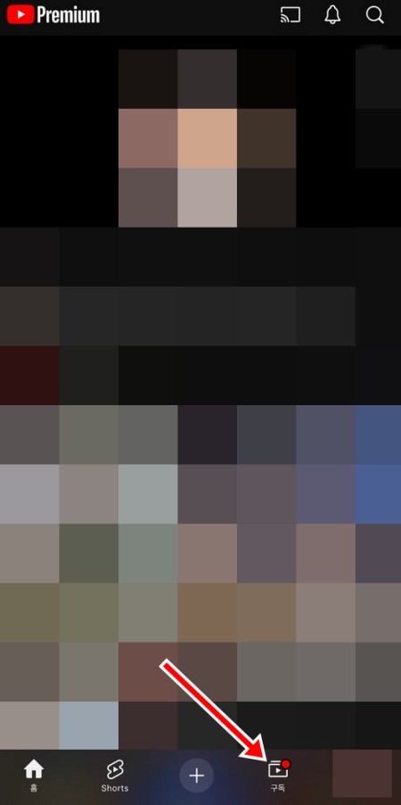 2. 앱이 열리면 화면 아래쪽에 있는 여러 메뉴 중 '구독' 항목을 찾아 선택합니다. 이곳에서 내가 구독하고 있는 모든 채널의 최신 영상들을 모아볼 수 있습니다.