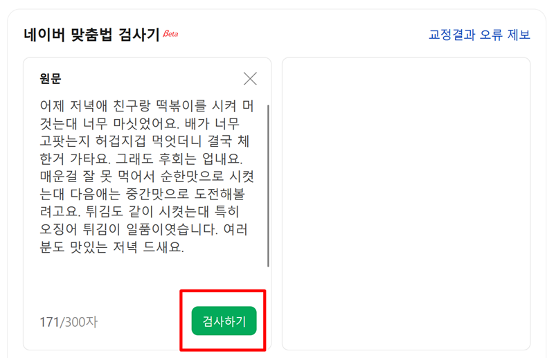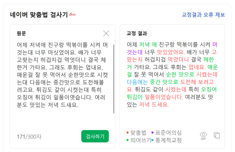 [네이버 한글맞춤법 검사기 - https://naver.me/GqBIvxiK]
