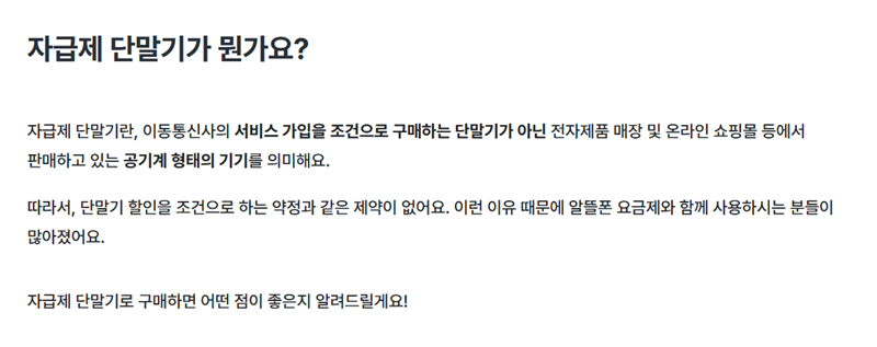 5. 게시물을 살펴보면 먼저 '자급제 단말기'가 무엇인지에 대한 설명부터 시작합니다. 이동통신사 가입을 조건으로 구매하는 단말기가 아닌, 전자제품 매장이나 온라인 쇼핑몰 등에서 판매하는 공기계 형태의 기기를 의미한다고 명확하게 정의해주어 개념을 쉽게 이해할 수 있습니다.