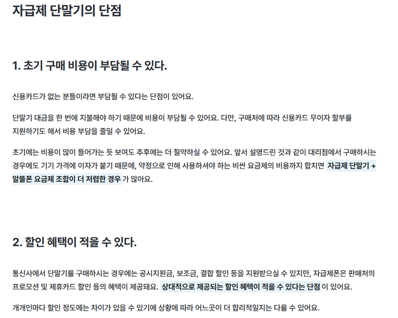 9. 물론 단점도 존재합니다. 가장 큰 단점은 '초기 구매 비용이 부담될 수 있다'는 점입니다. 통신사 지원금 없이 단말기 전체 가격을 한 번에 지불해야 하기 때문이죠. 또한, 공시지원금이나 선택약정할인과 같은 통신사 자체 할인 혜택을 받기 어려워 상대적으로 할인 혜택이 적게 느껴질 수 있습니다.