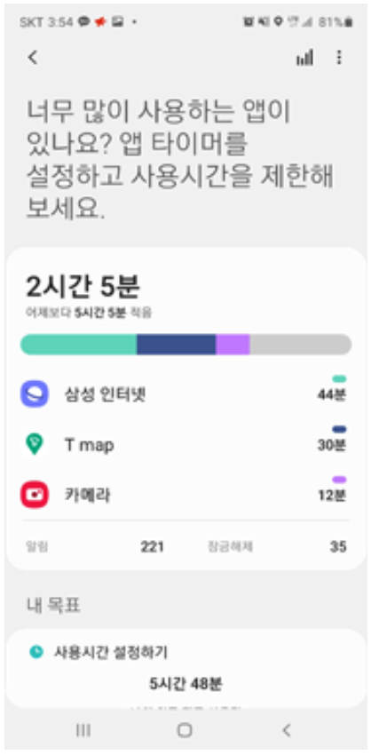 6. 상세 화면에서는 오늘 총 사용 시간뿐만 아니라, 어떤 앱을 얼마나 오래 사용했는지 순위별로 자세하게 보여줍니다. 이를 통해 불필요하게 시간을 많이 보내는 앱이 무엇인지 쉽게 파악할 수 있답니다.