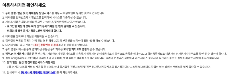 4. 서비스를 이용하기 전에는 안내 사항을 미리 확인하는 것이 좋습니다. 비회원도 특정 기능을 이용할 수 있으며, 결제 후에는 취소가 어려울 수 있다는 점 등을 미리 알아두면 더 원활하게 이용할 수 있습니다.