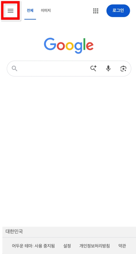 1. 구글 첫 화면의 오른쪽 아래를 보면 '설정'이 있습니다. 이 부분을 눌러서 다음 단계로 넘어가 주세요.